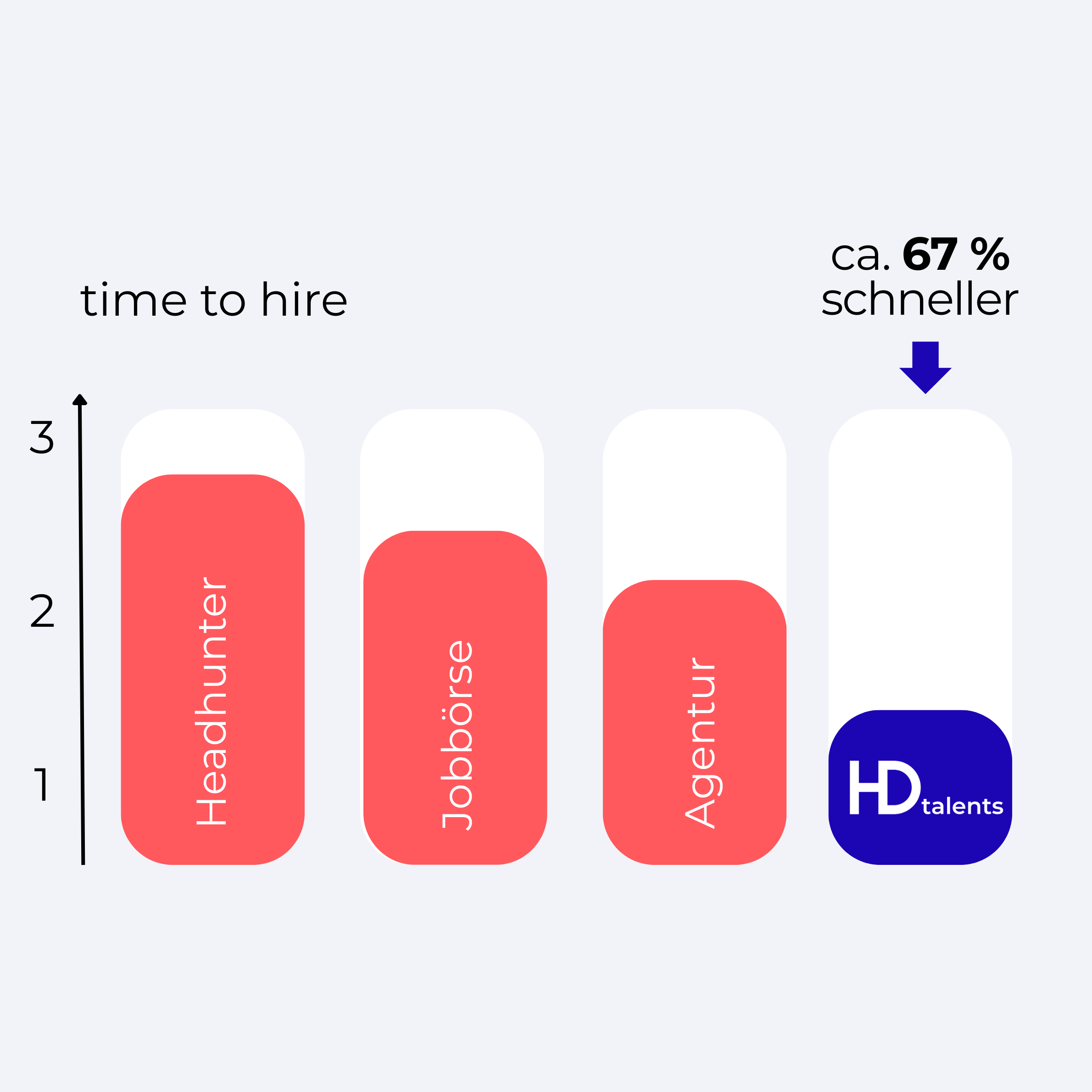 Die Antwort ist das HD Talents Recruiting System. Unser System besetzt Stellen mit einer Wahrscheinlichkeit von 86 Prozent in 30 bis 45 Tagen.