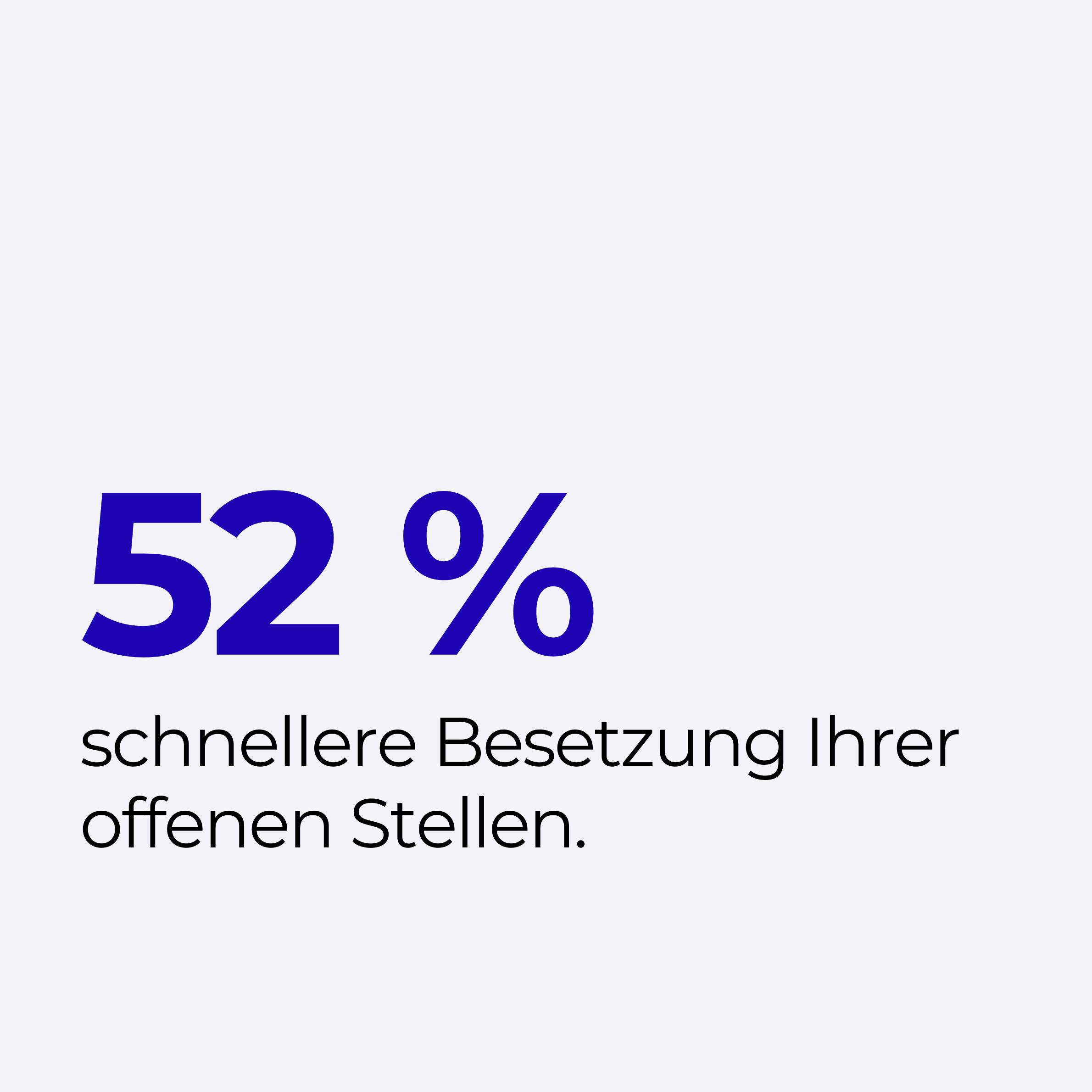 Ergebnisgarantie: Wenn Sie innerhalb der vereinbarten Laufzeit weniger als drei passende Bewerber erhalten, gemessen an den gemeinsam definierten Muss-Kriterien, erstatten wir 50 Prozent des Paketpreises zurück. Alternativ verlängern wir die Testphase um bis zu sechs Wochen und testen weitere Varianten.