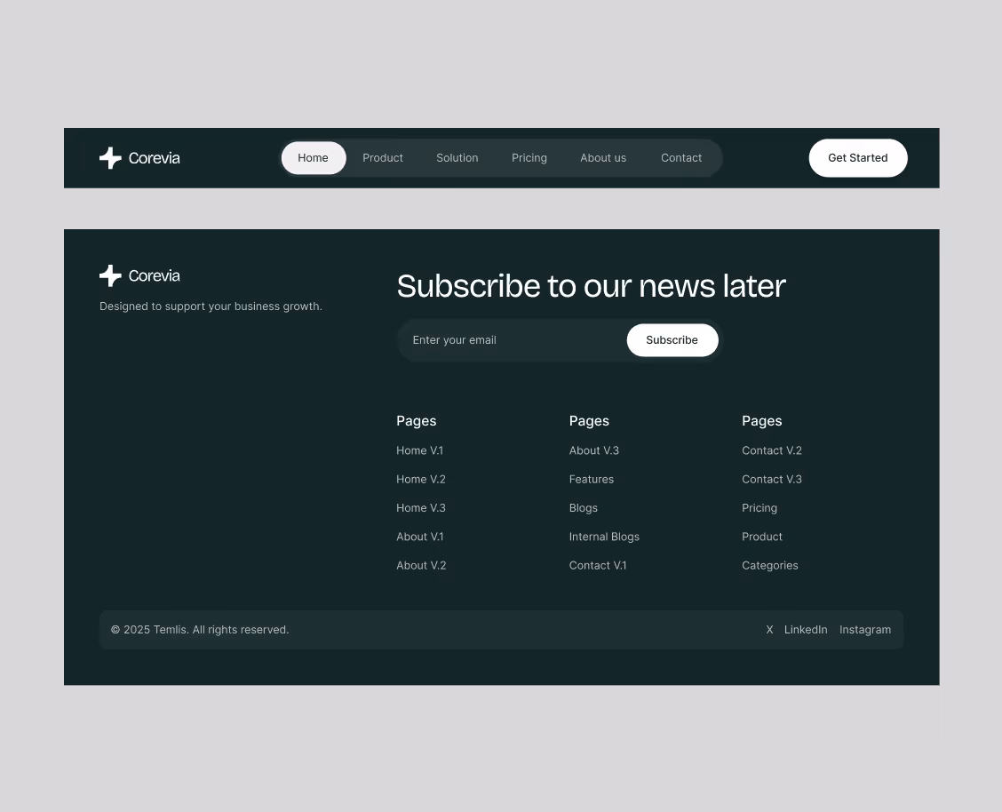 Send us an email to help@temlis.com with your purchase receipt, and we will send you the editable Figma file for the Corevia template.